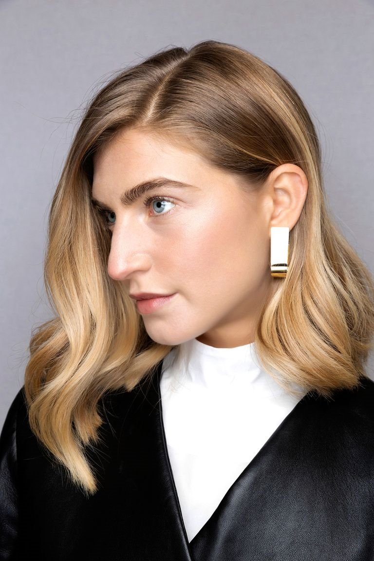 И один из самых красивых вариантов от бренда Nynne: лонг боб с объемной волной спереди, боковым пробором и окрашиванием блонд.