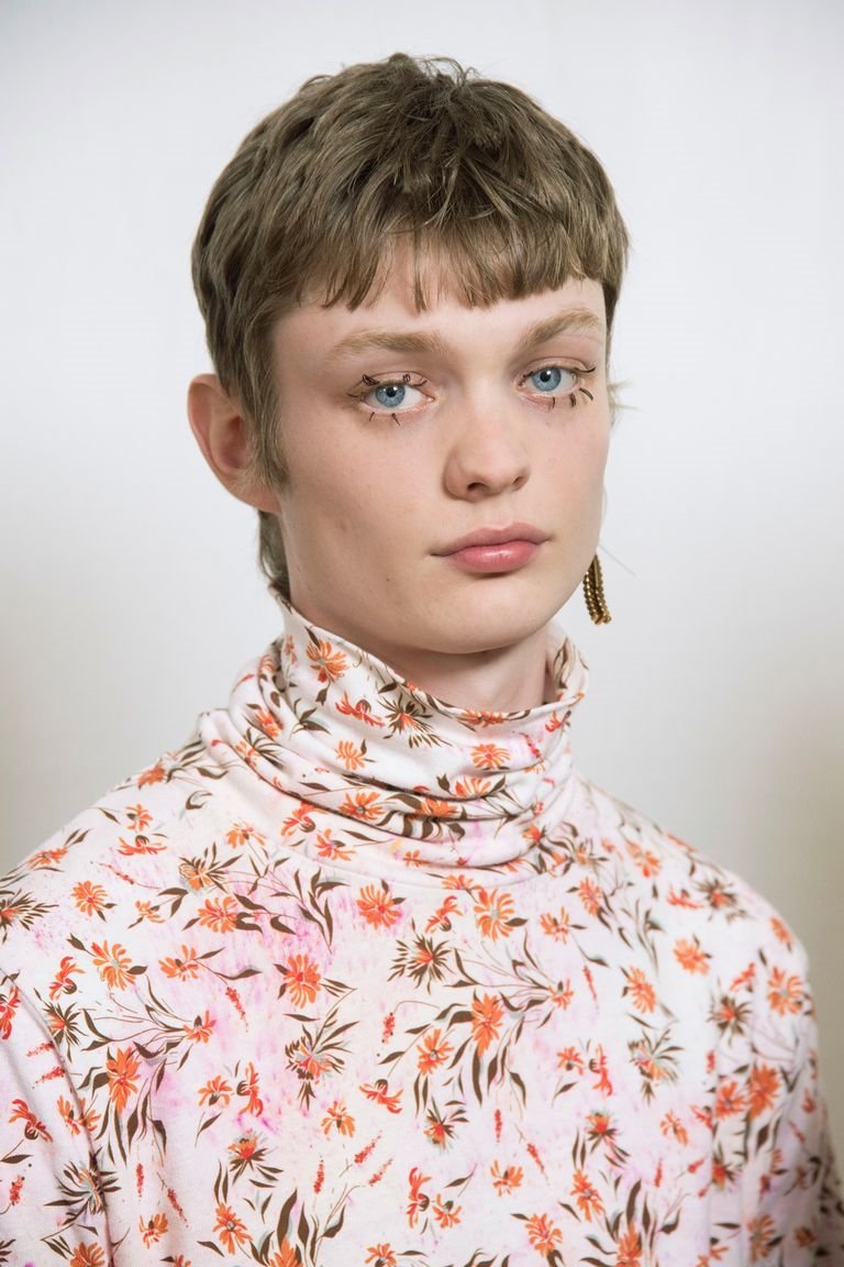 Еще одна идея от Altuzarra с удлиненными волосами на затылке и длинной челкой. Истинная стрижка маллет.