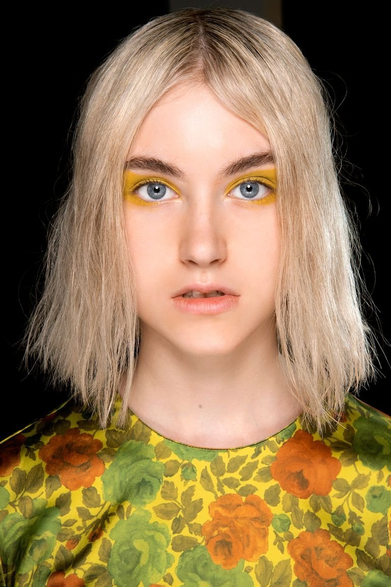 Итак, как вы знаете, волосы средней длины – не триумфаторы года, но все-таки эта длина будет очень популярной. Конечно, в новых вариациях. Например, в тренде вот такой ассиметричный вариант от бренда Marques’Almeida. Если давно хотели подстричь покрашенные волосы, то это хороший вариант, чтобы они обновились и восстановились.