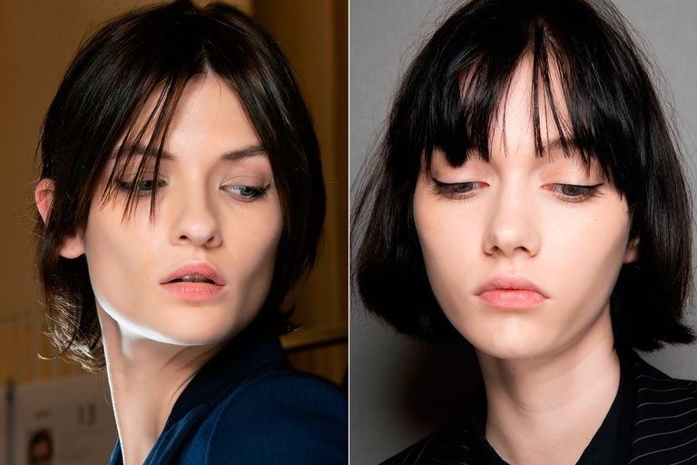 Дома моды Altuzarra и Dior отдали предпочтение длинной и открытой челке. Волосы средней длины темного цвета создают сексуальный, строгий образ.