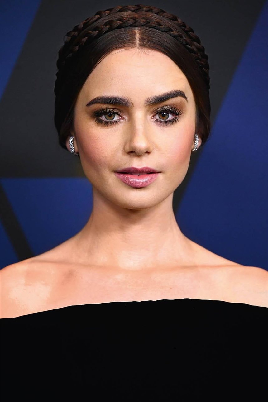 После выравнивания сделайте пробор посередине и соберите волосы на затылке в низкий хвост, оставляя с обеих сторон две свободные пряди. Сделайте пучок, а пряди заплетите в косы. Заплетайте правую прядь в левую сторону, а левую переносите направо. Обкрутите эти две косы вокруг головы, формируя двойную диадему, как на фото. Закрепите всю прическу лаком. Она должна выглядеть элегантно и безупречно.