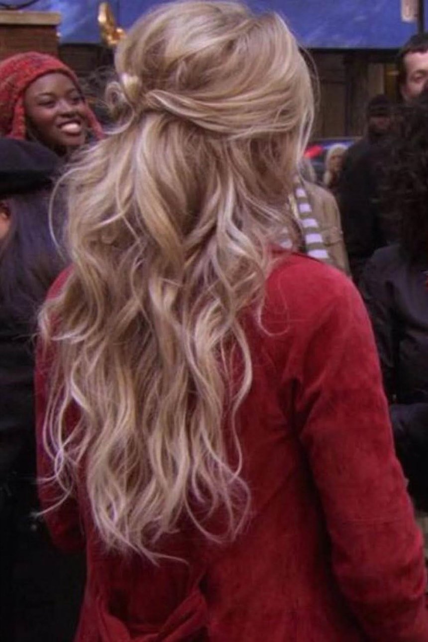 Такая прическа будет лучше смотреться с волнистыми волосами. Если у вас прямые волосы, воспользуйтесь плойкой. Кроме того, обязательно наносите спрей, чтобы изменить текстуру волос и добавить объема. Возьмите две пряди по бокам (с передней части головы) и закрепите их сзади резинкой или заколкой.