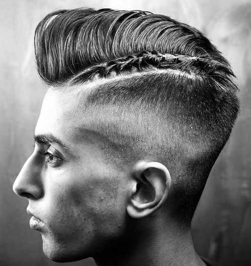 При достаточной длине, косичку можно заплести на любом участке волос. Плетение добавит уникальности и оригинальности вашему стилю. А сочетание косички со стрижкой «помпадур» вдвойне уникально, так как переход от коротких внизу волос к длинным сверху будет отлично просматриваться и получит красивое обрамление.