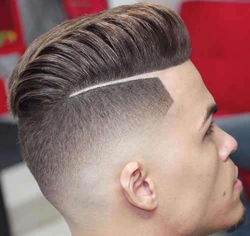 Четкие ровно выбритые линии придают изюминку любой стрижке. В этом варианте они идеально сочетается с «помпадуром» при средней длине волос.