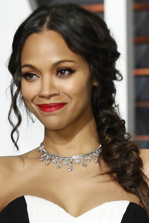 Когда дело доходит до кофейных оттенков, они не должны быть средними или светлыми. Зои Салдана выбрала для себя прекрасный темно-кофейный цвет волос, и он великолепно сочетается с тоном ее кожи. А прическа «рыбий хвост» на одну сторону – дополняет этот неотразимый образ.