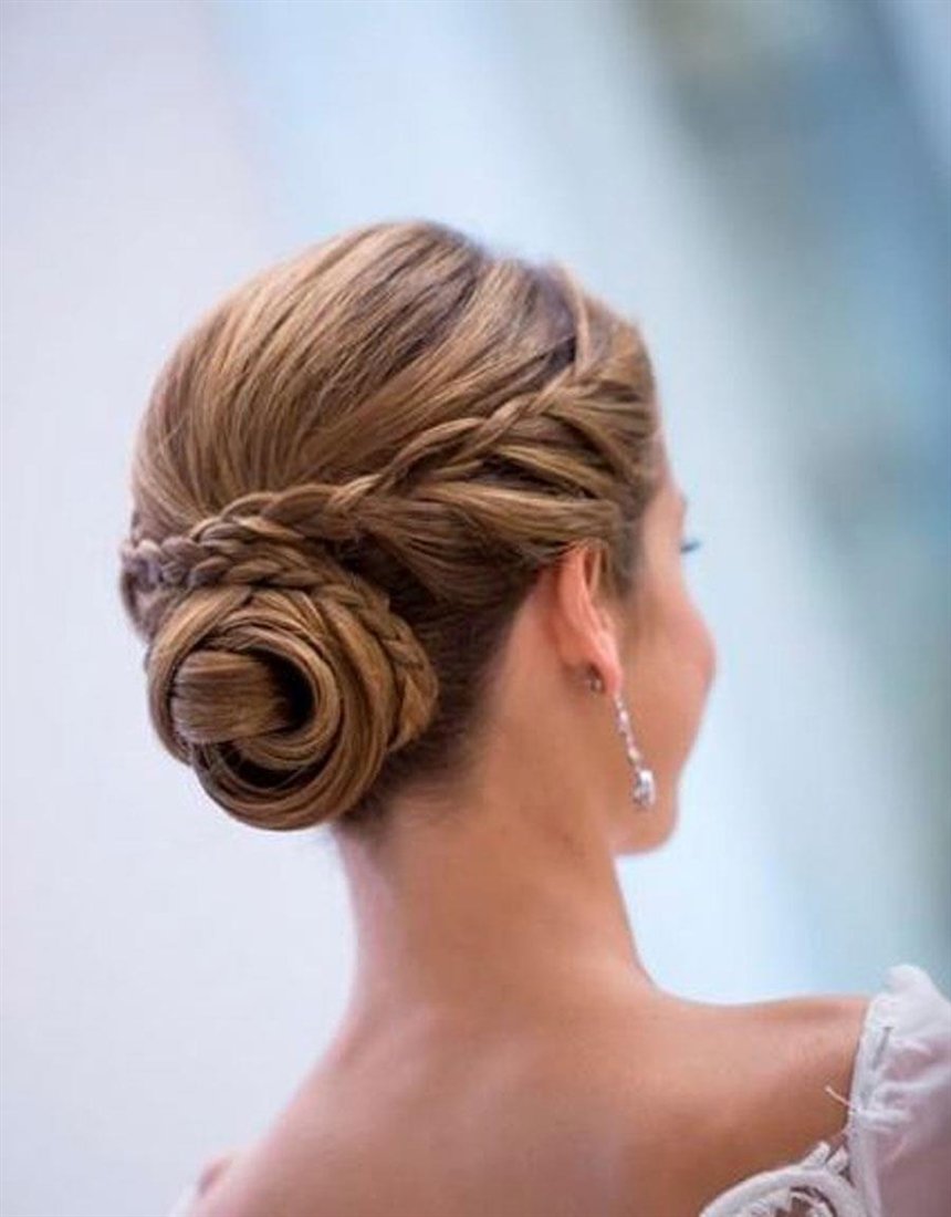 Низкие пучки в разных вариациях – это тоже надежная, проверенная прическа. Кроме того, смотрится очень красиво. Такая прическа тоже подойдет романтичным невестам. Украсьте пучок заколкой или другими аксессуарами.