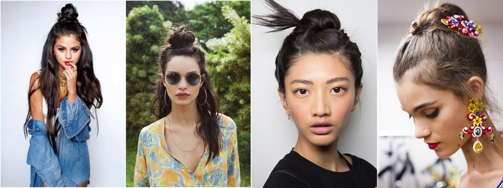 Пучки не выходят из моды, и продолжают радовать модниц своими вариациями. Пучки «балерины», высокие, растрепанные, на половину волос, узлом и плетенные. Удобный, и в тоже время красивый, пучок украсит любой образ. Главное, немного фантазии. Фото самых популярных женских причесок-пучков: