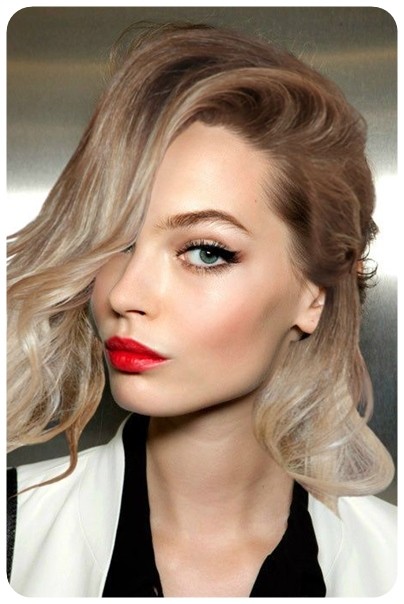 Глаза, накрашенные с использованием мерцающего синего цвета и накрашенные губы – вот то, что вам нужно для летней вечеринки.