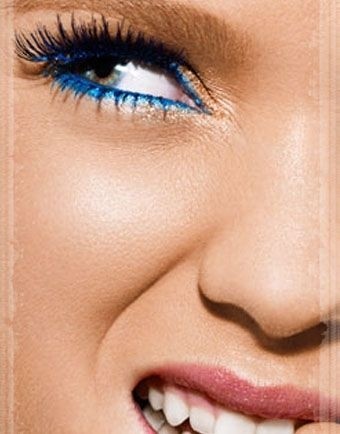 Подводка электрического синего цвета идеально смотрится на линиях ресниц.