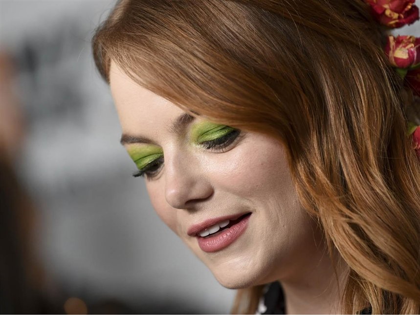 Посмотрите на макияж Эммы Стоун! Очень свежий, весенний вариант. Идеально подойдет девушкам с рыжими волосами, хотя обладательницы темных волос тоже будут прекрасно выглядеть с зелеными тенями. Вы создадите идеальный весенний образ, если нанесете зеленые тени и добавите светлый тон в зону слезных протоков. Не забывайте наносить основу для макияжа, чтобы все средства хорошо держались на протяжении дня. Выберите понравившийся тон зеленого цвета, нанесите на все веко и хорошо растушуйте. В зоне слезных протоков используйте иллюминатор, чтобы открыть взгляд. Хорошо прокрасьте ресницы тушью.