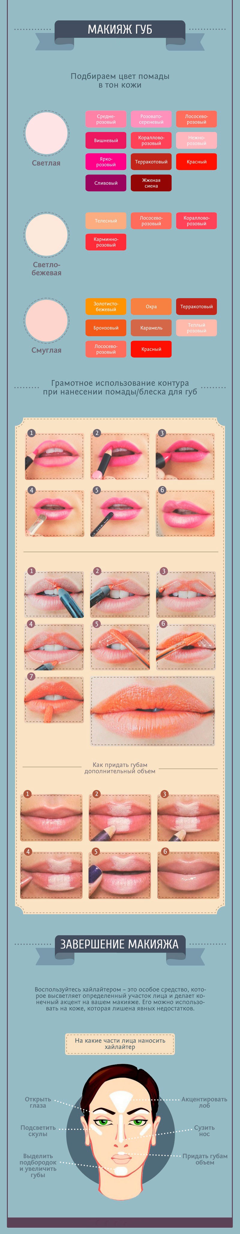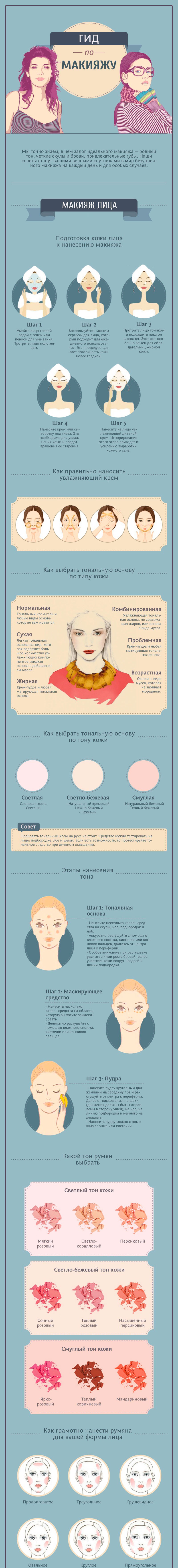 Здесь собраны основные советы и абсолютно все азы идеального мейкапа. Вы больше не будете путать, какую помаду или румяна подобрать. Предлагаем вам ознакомиться и сохранить в закладки этот гид, ведь он действительно является настоящей находкой!