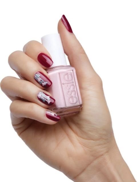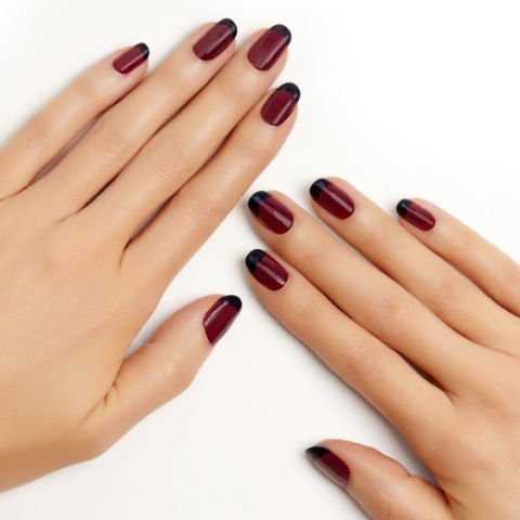 В этом маникюре с геометрическим дизайном используется негативное пространство. Чтобы оставаться в моде, отдайте предпочтение лаку красного оттенка.