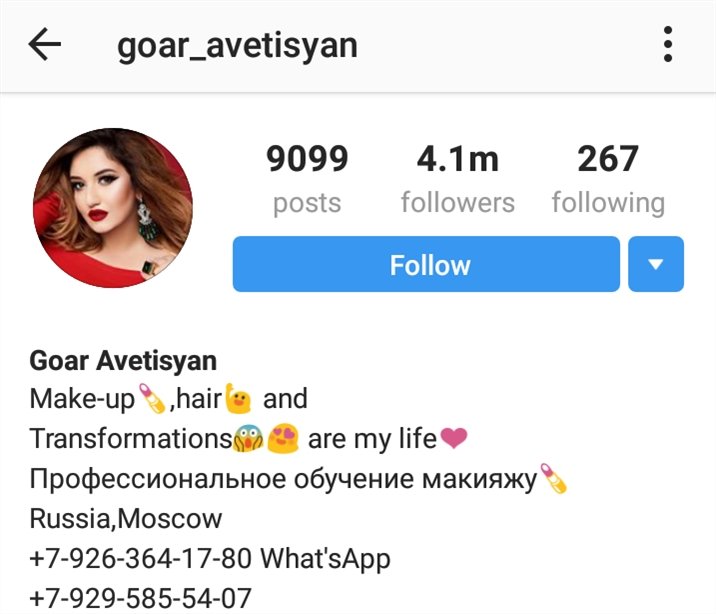 @goar_avetisyanГоар можно назвать настоящей волшебницей и мастером своего дела. Вы поймёте, что это не пустые слова, как только просмотрите пару видео преображений от известной визажистки. Кажется, что девушка родилась для того, чтобы менять мир к лучшему, ведь как иначе объяснить её шедевры? Более 4 миллионов подписчиков ежедневно наблюдают за блогом Гоар. Её посты привлекают, учат, очаровывают и неплохо мотивируют.