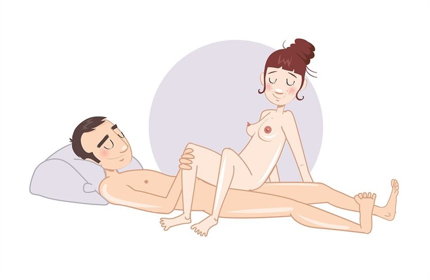 Достаточно спокойная, но наряду с этим, очень эффективная поза. Ни одному из партнеров не придется прилагать много усилий. Тонкий и интенсивный оргазм охватит ваш клитор и унесет его на глубину неописуемого удовольствия.