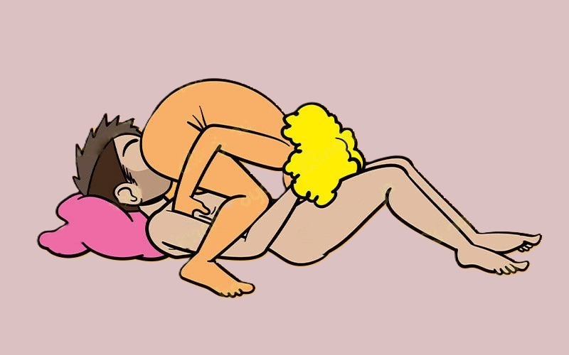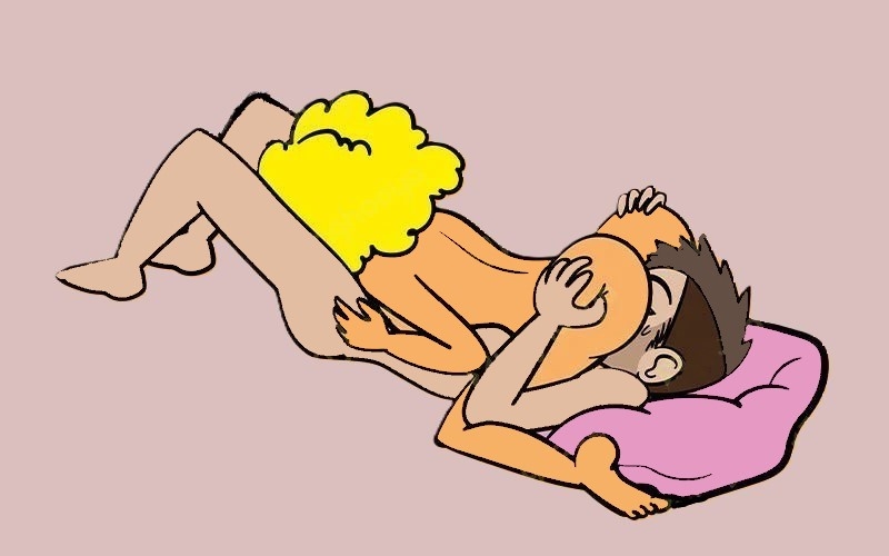 Это вариант знаменитой позы 69. Мужчина и женщина лежат боком, чтобы их лица находились на уровне интимных зон друг друга, а ноги были слегка согнуты в коленях.
