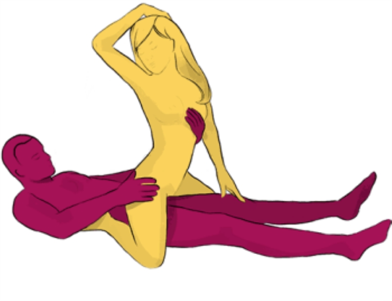 Мужчина садится, опираясь ягодицами на свои ноги, и немного откидывается назад, опираясь на одну руку. Женщина садится на его член и наклоняется вперед; ее ноги разведены в стороны, а ступни находятся рядом с лодыжками партнера. Она немного наклоняется, выставляет руки перед собой и использует их как опору. Мужчина кладет свободную руку на ее ягодицы и задает ритм движений.