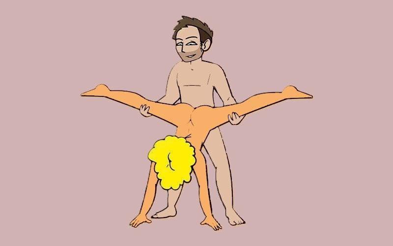 Одна искра может привести к взрыву страсти! Женщина стоит вверх ногами на руках. Ноги ее разведены в стороны, максимально широко. Мужчина обхватывает руками ее бедра, слегка раздвигает ноги и приседает над любовницей, чтобы войти в нее сверху.