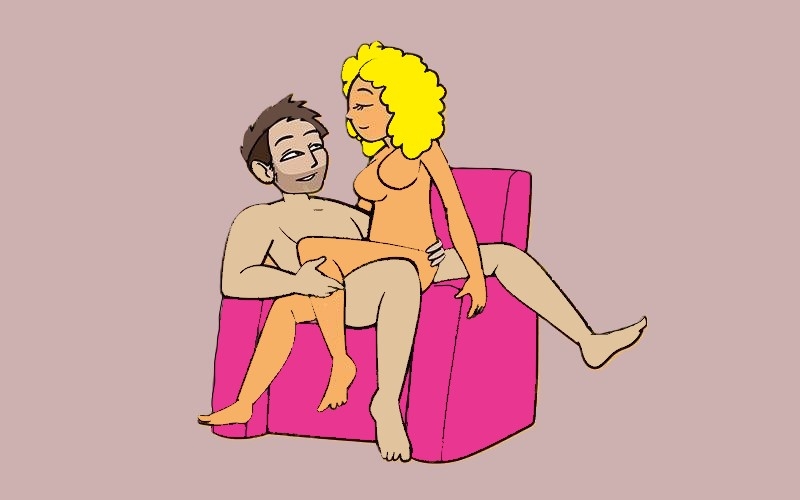Поза обеспечивает глубокое проникновение во влагалище и отлично подходит для мужчин с небольшим членом. Мужчина садится на диван. женщина присаживается над ним таким образом, чтобы держать над партнером свое тело. Влюбленные двигаются, соприкасаясь бедрами.
