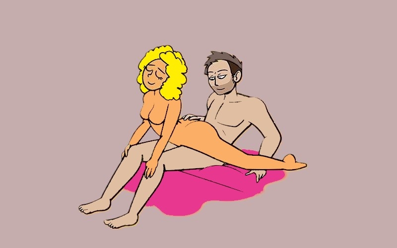 Поза отлично подходит для стимуляции точки G. Женщина лежит на спине. Она садится в позу обратной наездницы, а затем осторожно наклоняется назад, пока ее спина не окажется на груди партнера.