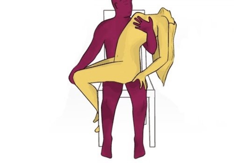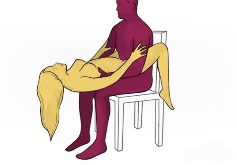Очень интересная поза, которая позволит партнерам узнать, есть ли доверие и близость в их отношениях. Мужчина сидит на стуле, расставив ноги. Его партнерша присаживается на избранника и отклоняется назад, насколько это возможно. Мужчина придерживает избранницу руками, не давая ей упасть.