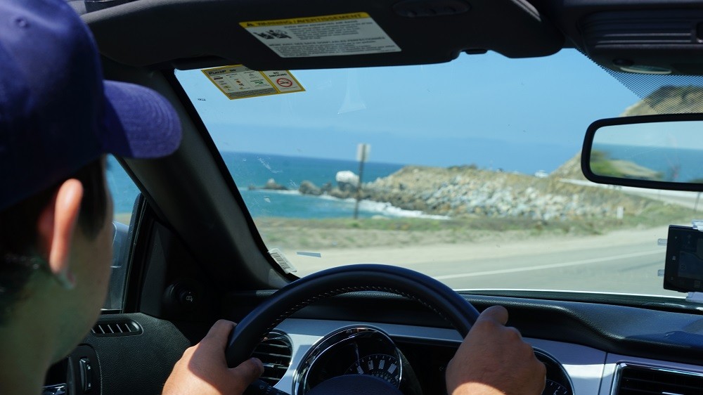 Впечатлений было масса, как от пейзажей за окном, так и от самого автомобиля. Мне достался серебристый Ford Mustang convertible. Стоит открыть дверцу и сесть за руль, как сразу ощущаешь разительную разницу между этим спортивным автомобилем и тем, что стоит у нас в гараже, и что мы привычно называем «моя машина».Во-первых, Mustang очень низкий, с длинным, вытянутым капотом, на котором, в качестве оригинального дизайнерского решения, находится горбинка. Во-вторых, интерьер салона выполнен в стильных угольно-черных тонах, с мягкими огоньками амбиентной подсветки, а посредине находится автоматическая коробка передач, с набалдашником внушительных размеров. Сразу становится ясно, что это автомобиль абсолютно иного класса. И, проезжая первые несколько метров, было слышно, как под его колесами трещат все остальные машины, созданы по стандартным шаблонам.