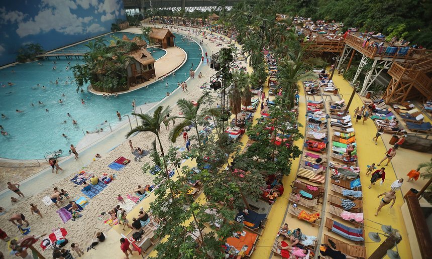 Жители Берлина любят плавать. В городе полно общественных бассейнов, а в Бранденбурге много озер с песчаными пляжами, куда летом съезжаются местные жители и туристы. Правда одно место выделяется среди других. Аквапарк «Тропические острова» находится в 60км к югу от немецкой столицы: прямо в сердце северной Европы. Он находится в бывшем ангаре для дирижаблей, который поражает своим размером. Здесь есть все, что ассоциируется с тропиками: пальмы, экзотические птицы, пляж, пиратский корабль, а также водные горки, шезлонги, беседки, украшенные цветами, огромное спа, сувенирные лавки и даже небольшой нудистский пляж.Официальный сайт: tropical-islands.de