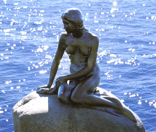 Бронзовая фигура Русалочки (была создана в 1913 году местным скульптором Эдвардом Эриксеном) является одним из самых известных символов Копенгагена. Героиня сказки Андерсена сидит на камне у берега набережной Лангелини в гавани Копенгагена. Весит статуя 175 килограмм, ее высота составляет 125 сантиметров.
