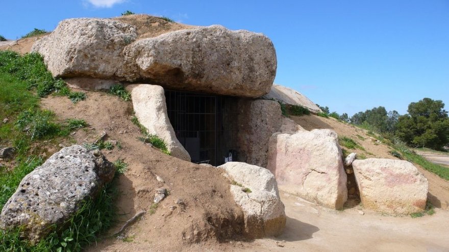Только представьте себе - курган Менга состоит из 32 блоков, вес самого крупного из которых равен 180 тонн. Дольмены Антекера созданы приблизительно в 3700 году до н.э. Стены Менга, Вьера и Ромераля украшены сотнями антропоморфных изображений. Внешнее сходство с критскими курганами наводит исследователей на мысль о тесном контакте древних антекерцев с минойской цивилизацией.