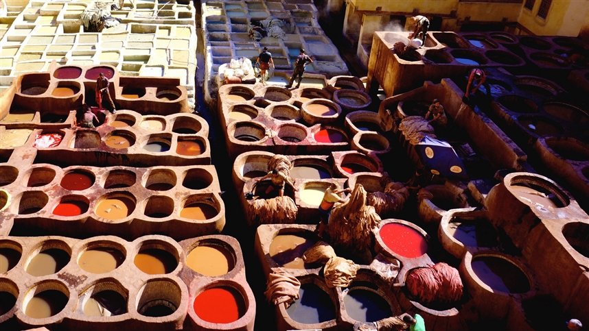Кожа - материал гибкий, прочный и стильный. Звучит как качества идеального партнера, не правда ли? Древнейшие кожевенные мастерские в Марокко - рай для ценителей кожаных изделий. Отправляйтесь в атмосферный Фес, загляните в красильни Шуар и посмотрите на процесс выделки кожи, который не менялся со времен Средневековья. Наблюдать за работой кожевников можно с террасы одного из магазинов кожаных изделий. Прямо тут прикупите себе сумку из натуральной кожи или яркие узконосые тапки ручной работы. Не стесняйтесь торговаться с хозяином лавки!