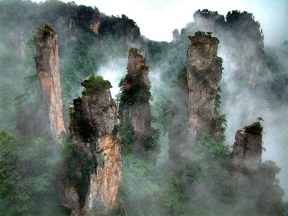 Скалы Цзянькуньчжу достигают высотой от 1000 метров до 3 километров. Это поистине поразительное зрелище!