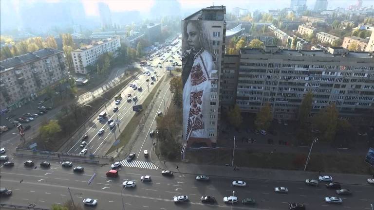 Зачем далеко ездить, если столица Украины может похвастаться одним из самых больших муралов в мире! Раскрываем карты сразу: это 18-этажный дом по бульвару Леси Украинки (36 Б) с 43-метровым полотном авторства Гвидо ван Хелтена. Легендарный австралиец воплотил на многоэтажке украинскую девушку в вышиванке.