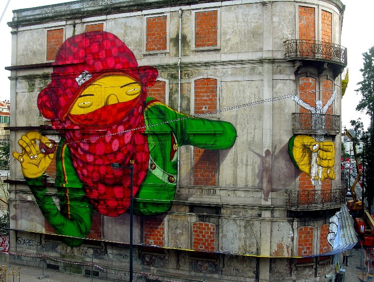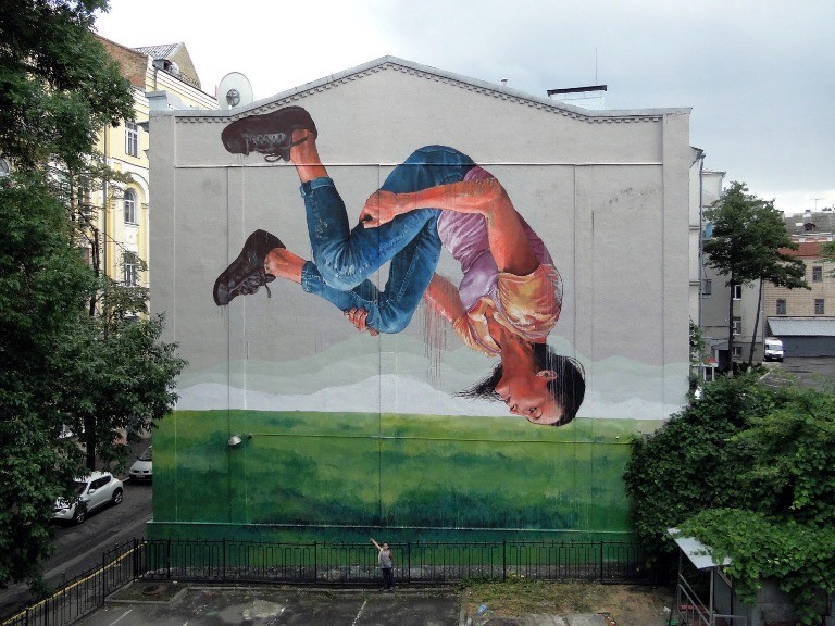 Киев вообще в последнее время чрезвычайно заинтересовал иностранных мастеров стрит арта – здесь успели отметиться своими работами, кроме перечисленных выше, также испанские, португальские творцы. Многоэтажки советской застройки просто идеальны для подобных перформансов!