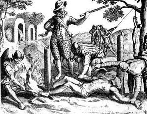 Когда-то давно англичане мирно сосуществовали на Манхэттене по соседству с местными индейцами (между ними был заключен мирный договор). Но в один прекрасный день, некоему высокопоставленному англичанину такая жизнь почему-то надоела, и он придумал как избавиться от такого соседства раз и навсегда. Якобы этот самый англичанин поймал у себя в саду девушку-индианку, ворующую персики. Финал был предрешен: всех до одного индейцев вырезали.4-х летняя война между викингами