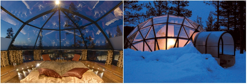 Иглу – это куполообразное сооружение до четырех метров в диаметре и до двух метров в высоту. Так вот в Финляндии можно отдохнуть в таком удивительном строении, полностью сделанном из стекла. За окном – лютый мороз, а внутри теплота и уют. Если вы везучие – увидите северное сияние.