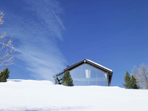 Домик в Австрийских Альпах в стиле минимализма. Отличительная черта – громадные окна. Уют и вид очаровательных гор вам обеспечен.