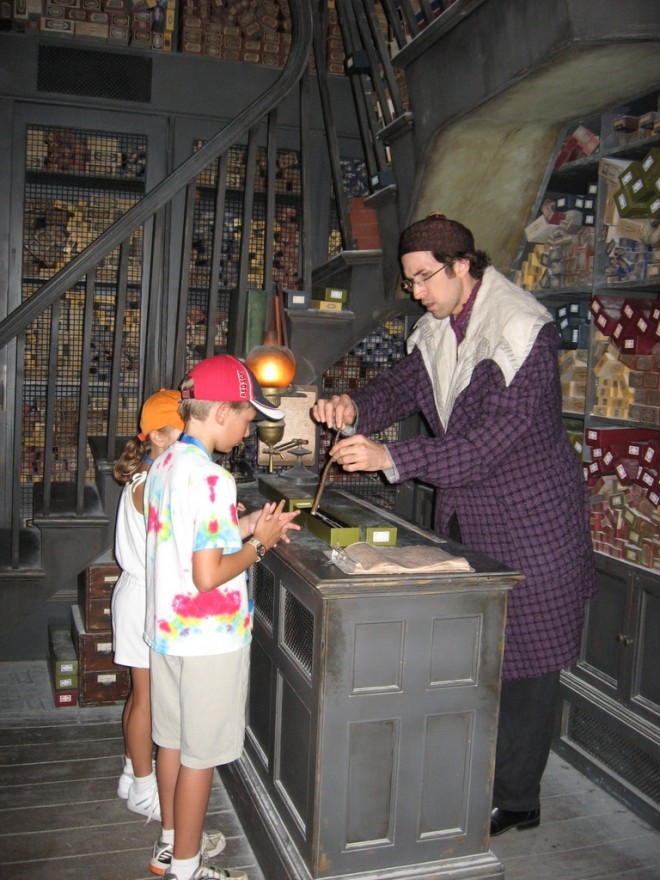 The Wizarding World of Harry Potter в мельчайших деталях повторяет декорации и реквизит из фильмов о мальчике-волшебнике. Здесь вы можете увидеть настоящий Хогвартс-экспресс, подъехавший на станцию Хогсмит, попробовать сливовое пиво и, воспользовавшись помощью Оливандера, купить волшебную палочку.