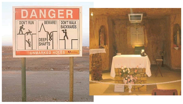 Кубер-Педи – одно из самых необычных мест в мире. Это город, где из-за очень высокой температуры 80% населения живет и работает под землей. Кубер-Педи –также и шахтерский город (здесь добывают опалы) и, начиная с момента открытия залежей в 1915 году, множество шахтеров наводнили город в поисках заработка. Ямы и туннели здесь повсюду, а добыча опалов продолжается и по сей день. Все подземные учреждения работают так же, как и их наземные аналоги. Среди них церковь, магазины, гончарная мастерская, художественная галерея и другие. Самым необычным, должно быть, является поле для гольфа без единой травинки. Фарвей абсолютно лишен растительности и лишь посыпан песком.
