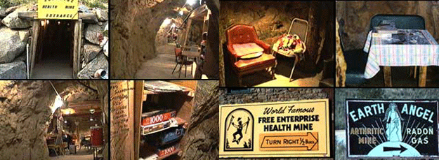 Изначально, с 1924 года радоновая шахта использовалась для добычи серебра и свинцовой руды. В 1949 году в заброшенной шахте была обнаружена радиация, но представительница инвестиционной компании, посетившая шахту, внезапно излечилась от давнего заболевания. Пошли слухи, и вскоре в шахте открыли центр радонотерапии. Терапия малыми дозами радиации способствует излечению большого числа болезней не только у людей, но даже у животных. С собой вы можете принести подушку и одеяло, на случай, если вам захочется вздремнуть.