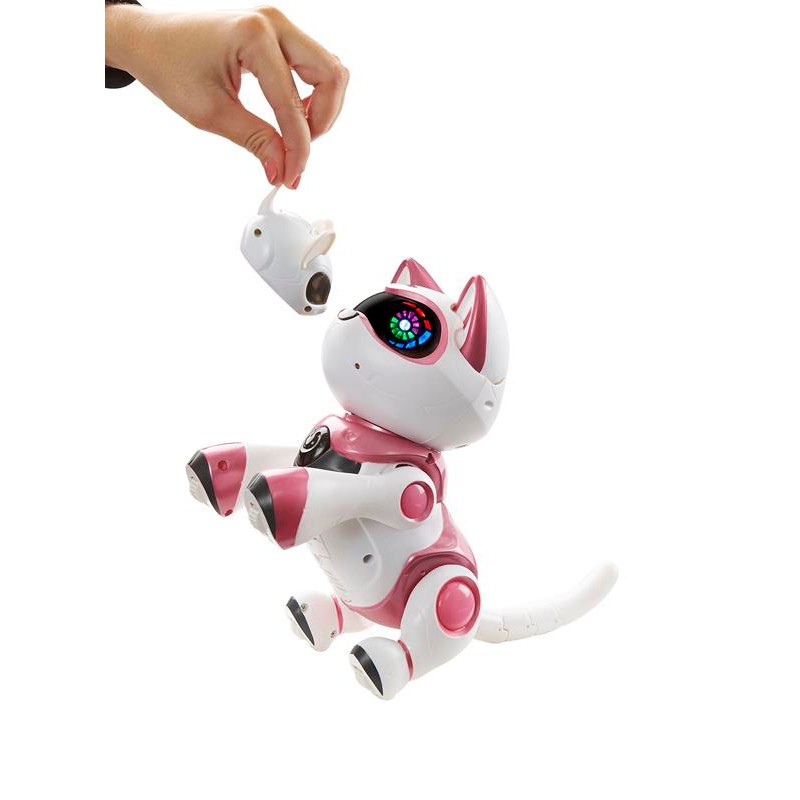 Это чудо техники умеет мурлыкать, мяукать, откликается на человеческий голос, прыгает, бегает, распознает жесты и, внимание, ловит мышку! Да это же почти настоящая кошка! Она слушается людей и, конечно же, выполняет все команды, что ей говорят. Этот чудо-котенок является самым современным роботом и управляется с помощью планшета или мобильного телефона. Также питомцем можно управлять и руками, он будет играть или сидеть, ведь эта игрушка оснащена сверхчувствительными датчиками. Кошка-робот ведет себя прямо как настоящая: если ее погладить по спинке – она начнет мурлыкать, если показать ей специальную мышку – она начнет ее ловить.