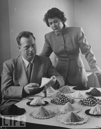 Эти чашечки предполагалось носить женщинам вместо привычного бюстгальтера. Задумывались они для того, чтобы не обременять эту часть гардероба дополнительной фурнитурой: крючками, лямками, застежками и т.д. Изобретение увидело свет в 1949 году.
