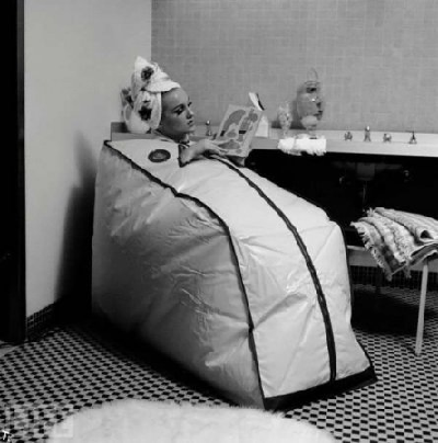Изобретение 1962 года до сих пор можно увидеть в качестве «выгодного предложения» в магазинах на диване. Называется оно «переносная сауна». Думаю, кайф от такой сауны весьма сомнительный.