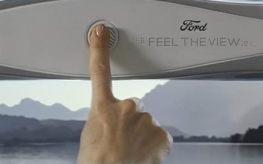 Путешествия – это прекрасно, согласны? Одной из важных составляющих поездок к новым местам зачастую становятся чарующие пейзажи за окном. Будь то бескрайние зеленые луга, белоснежные горы или солнечное побережье – все эти картины дарят нам незабываемые воспоминания, наполняя душу каким-то детским восторгом от знакомства с волшебством окружающего мира. Однако не каждому путешественнику под силу ощутить всю прелесть путешествий. Для слабо видящих людей пейзажи за окном сливаются в монотонную мешанину с едва уловимыми деталями, а слепые лишены даже размытого изображения. К счастью, за дело взялись умельцы из Ford. Результатом их трудов стала уникальная система, преобразующая визуальную картинку в тактильную. Недавно компания Ford опубликовала первое видео с демонстрацией ультрасовременной технологии Feel the View (англ. «ощути вид») – прототипом смарт-окна для автомобилей. Специально разработанное устройство крепится в верхней части пассажирского окна, а снаружи устанавливается особая камера. При нажатии кнопки, система фотографирует текущий пейзаж, преобразуя картинку в черно-белое изображение и выводя его на поверхность экрана, оснащенного особыми светодиодами. Затем оттенки конвертируются в вибрации определенной интенсивности.