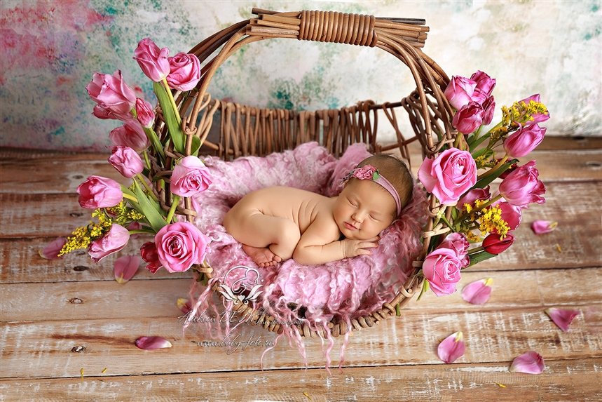 - Смысл новорожденной фотографии именно в образах, созданных, когда ребенок спит, - увлеченно продолжил Алексей, - Поэтому, например, уже в полтора-два месяца практически невозможно сделать похожие кадры. По истечении 14 дней ребенка уже не просто уложить в эмбриональные позы, он не такой пластичный. А когда деток постарше пытаются засунуть в малюсенькие корзинки и бадейки, это вызывает улыбку. Деток постарше надо фотографировать уже совсем по-другому.Смысл новорожденной фотографии именно в образах, созданных, когда ребенок спит
