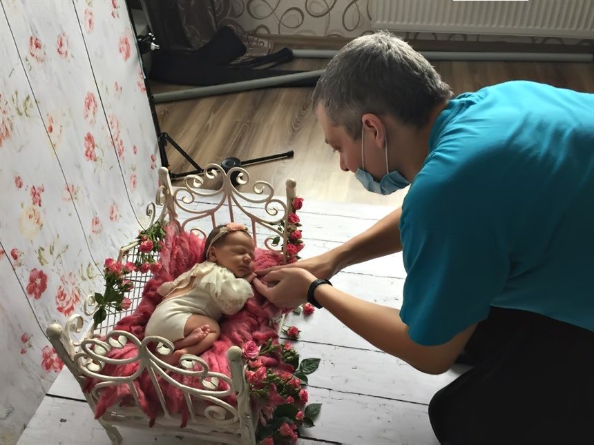 - У меня не единожды были ситуации, когда, приехав на съёмку, я видел целый арсенал подготовленного реквизита. Даже специально сделанная для такого случая кроватка. И родители, которые несколько раз пытались провести сами эту съёмку. Даже если человек занимался фотографией – он гарантировано не сможет сделать это сам. Когда он научится правильно делать, ребенок уже вырастет из подходящего для съёмки возраста. Без достаточной практики выложить красиво малыша невозможно. Есть определенные позы, которые родители не то что могут не знать, но и не должны повторять, потому что это просто опасно. Есть многие позы, за которые не берутся даже профессиональные фотографы, чтобы не навредить малышу. Это огромная ответственность.