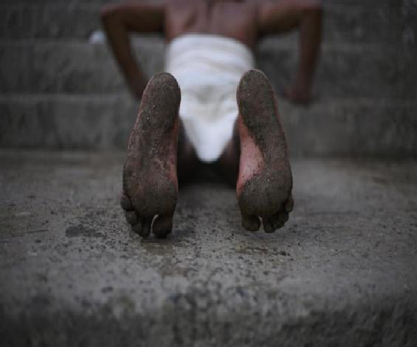 Индийский святой подвижник Лотан Баба предпринял путешествие в необычный способ. Он перекатывался в течение 8 месяцев, и накатал за это время 4000 километров. В среднем, в день он прокатывал около 11 км. Свое мероприятие Баба посвятил богине Вишну, чтобы она даровала народу Индии мир и единство. Благородно! В пути мужчина почти ничего не ел, кроме воды, хлеба и сигарет. За время прокатки его тело превратилось в один сплошной мозоль. Сила воли, да…