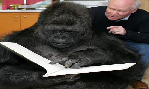 Все-таки, это обезьяна, горилла по имени Коко. С детства она изучалась и воспитывалась учеными Стенфорда. Так что можно заслуженно утверждать, что горилла окончила университет и имеет высшее образование. (Это шутка!).Первая в мире обезьяна шимпанзе Уошо, говорящая на языке жестов, отошла в мир иной в 2007 году, прожив 41 год. Не разговаривала она потому, что имела природный физиологический дефект – отсутствие голосовых связок. Даже после рождения детеныша, сообразительное животное стало само обучать его общению, с помощью жестов. Такой оглушительный успех подтолкнул других ученых вплотную заняться воспитанием приматов.