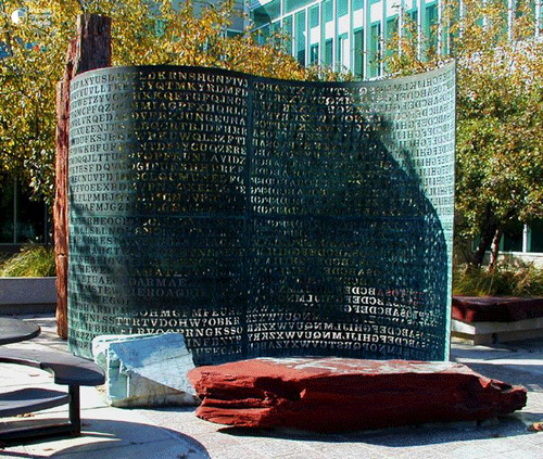 Она находится в городе Лэнгли, в штате Вирджиния. В данный момент скульптура украшает центральный офис ЦРУ. Особенность ее в том, что послание, которое написано на самой скульптуре никто не может расшифровать, а ведь прошло уже двадцать лет с того момента, как скульптуру установили. Над ее расшифровкой работают лучшие в мире специалисты, знающиеся на символах и иероглифах. И за все время они расшифровали только три секции. А ведь в общем количестве их сто.