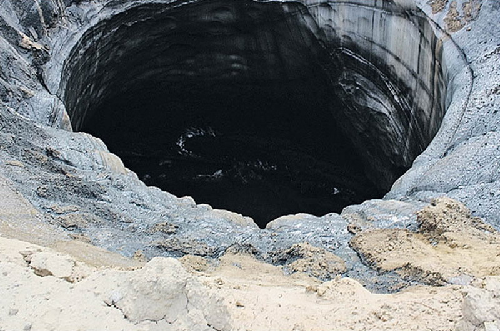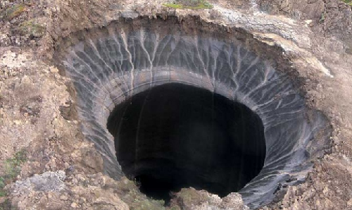 На этом Сибирские феномены не закончились, там продолжают появляться непонятные дыры, без видимых и мало-мальски внятных причин. За Полярным кругом, в районе Бованенковского месторождения газа была обнаружена первая гигантская дыра, внутренним диаметром 40 метров, и внешним – 60 метров. Благодаря воздушным видеосъемкам, в воронке имеется какой-то мусор и вялое горение по диаметру.Сотрудники научного Субарктического центра предполагают, что причиной такого явления служит глобальное потепление. Дело в том, что под кратером мог скапливаться лед и газ в течение нескольких десятилетий. Это и могло послужить причиной подземного взрыва. Данная версия имеет право на жизнь, поскольку по сей день там сохраняется содержание метана на 10% выше нормы.