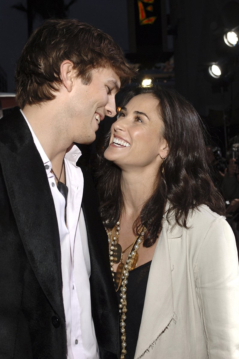 Когда они познакомились, он был влюблен в другую женщину. Через 2 недели Деми оказалась на празднике, который организовывал Эштон. Они влюбились через переписку SMS и поженились в 2005 году. Ей было 43 года, а ему 27. На протяжении 6 лет это была одна из самых знаменитых пар в Голливуде. Они разошлись из-за бесконечных измен актера.