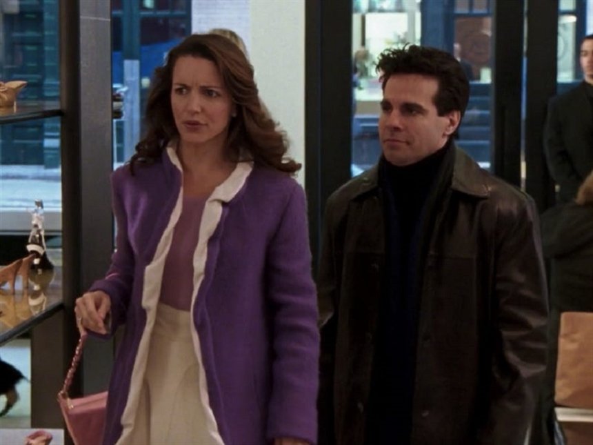В своей первой сцене Шарлотта Йорк выглядит чопорно и достойно. На ней серый кардиган, блузка с рюшами и бежевая юбка, идеально подходящая для манхэттенского арт-дилера.